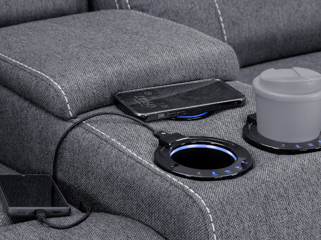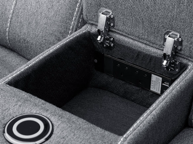 Our best selling tech sofa, Galaxy Tech Sofa is jam-packed with tech and features, the perfect set for any modern home. Available in Black Leather aire, Grey Leather aire and Grey Fabric, this set stands out with its contrast stitching, padded arms and centre console. Currently available as a 3 seater, 2 seater and armchair.