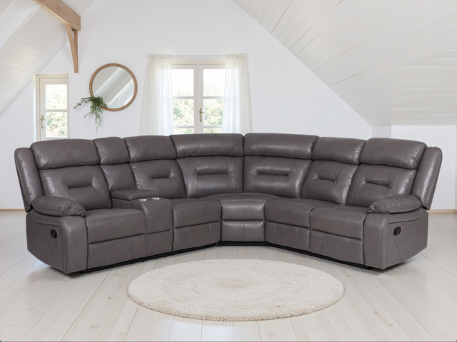 The Poppy range is available as a Large Corner in Grey Fabric, Black Faux Leather and Grey Faux Leather. This comfy large corner features a console with lift up storage and cupholders and manual recliners.